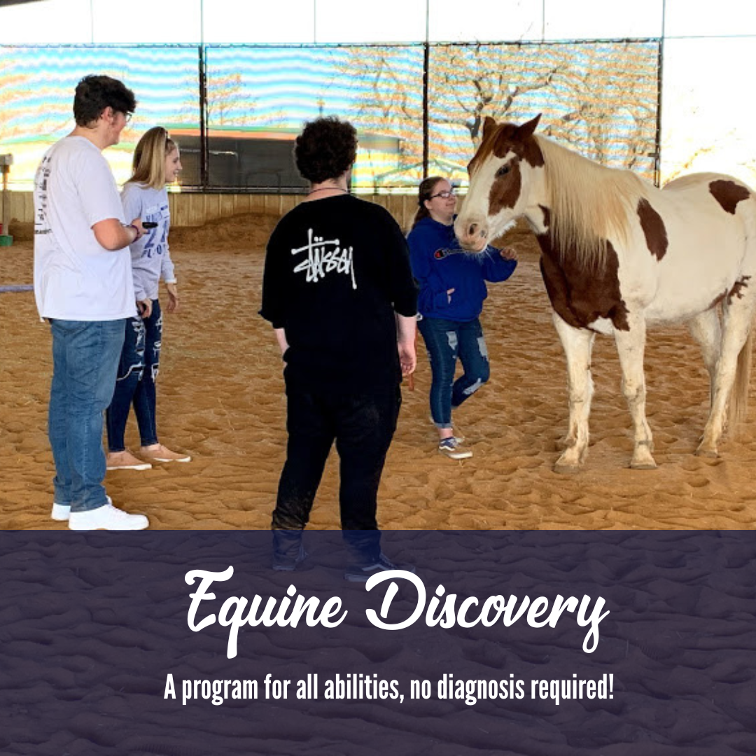 Equine Discovery ProgramNo diagnosis?!?....no problem...An opportunity to experience the partnership of a horse for all abilities, no diagnosis required through Summer Camp, Field Trips, and Team Building opportunities.